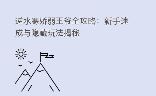 逆水寒娇弱王爷全攻略:新手速成与隐藏玩法揭秘
