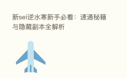 新sei逆水寒新手必看:速通秘籍与隐藏副本全解析