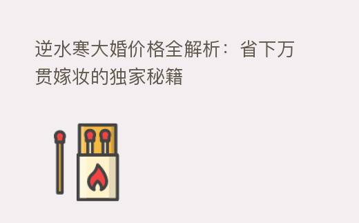 逆水寒大婚价格全解析:省下万贯嫁妆的独家秘籍