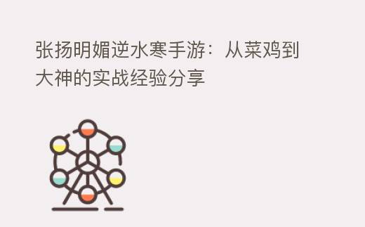 张扬明媚逆水寒手游:从菜鸡到大神的实战经验分享