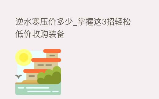 逆水寒压价多少_掌握这3招轻松低价收购装备