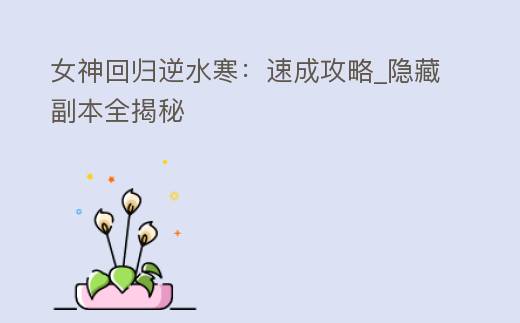 女神回归逆水寒:速成攻略_隐藏副本全揭秘