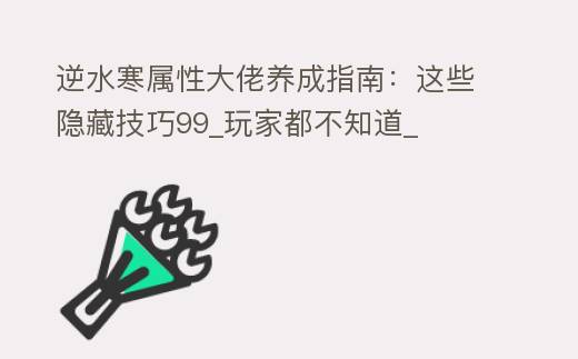 逆水寒属性大佬养成指南:这些隐藏技巧99_玩家都不知道_