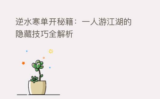逆水寒单开秘籍:一人游江湖的隐藏技巧全解析