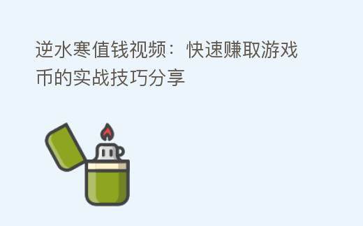 逆水寒值钱视频:快速赚取游戏币的实战技巧分享