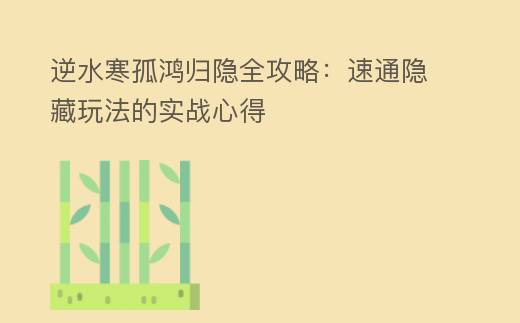 逆水寒孤鸿归隐全攻略:速通隐藏玩法的实战心得