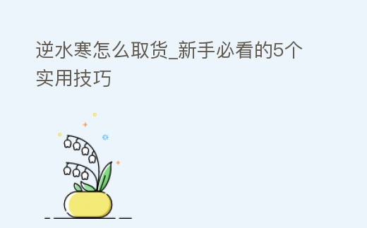 逆水寒怎么取货_新手必看的5个实用技巧