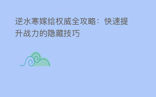 逆水寒嫁给权威全攻略:快速提升战力的隐藏技巧