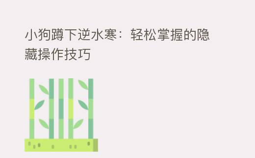 小狗蹲下逆水寒:轻松掌握的隐藏操作技巧